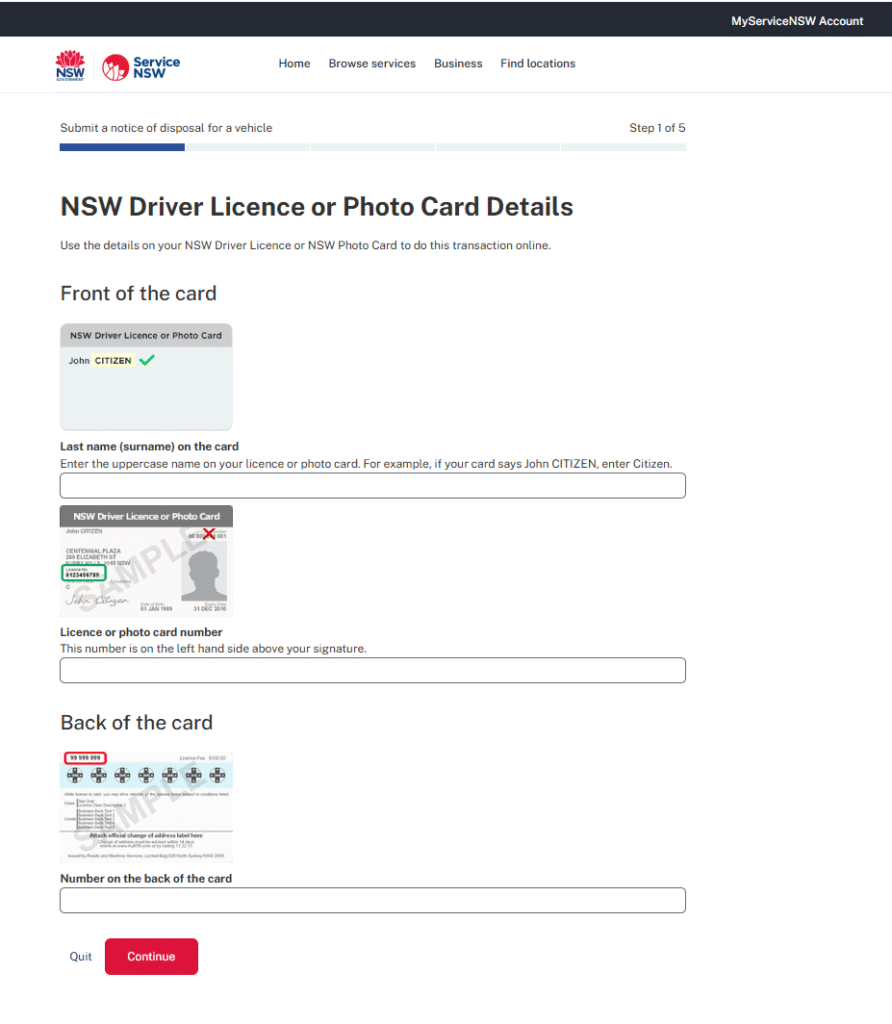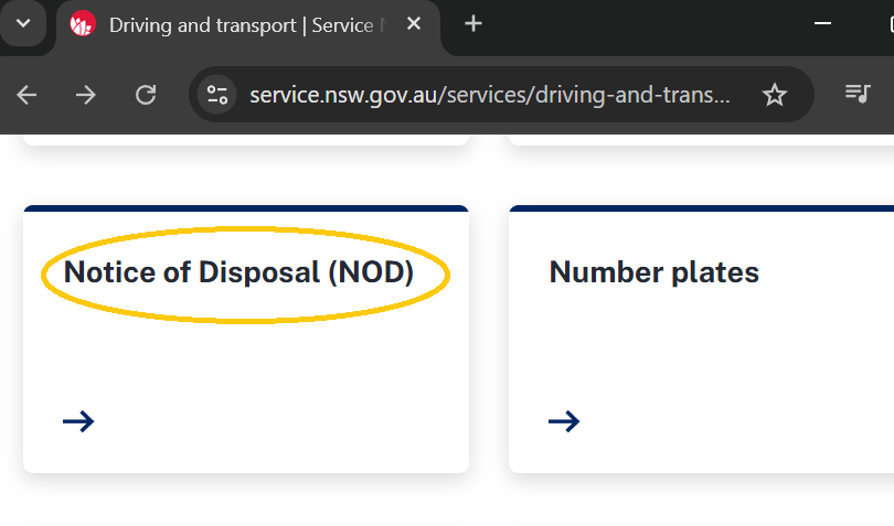 You can submit a notice of disposal online by using your NSW driver license or Photocard.