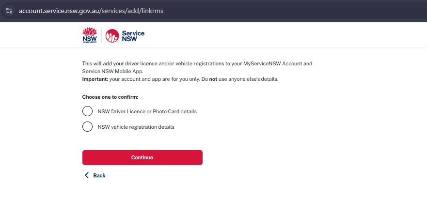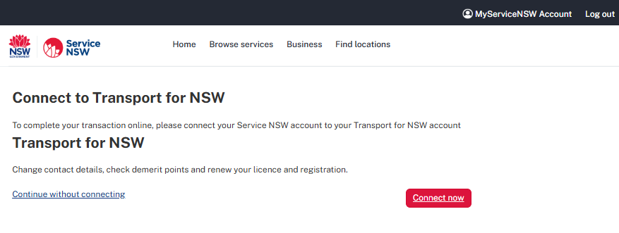 B.3 Connect your Service NSW account to your Transport for NSW account if not connected already. By using your NSW Driver’s license or NSW vehicle registration details.