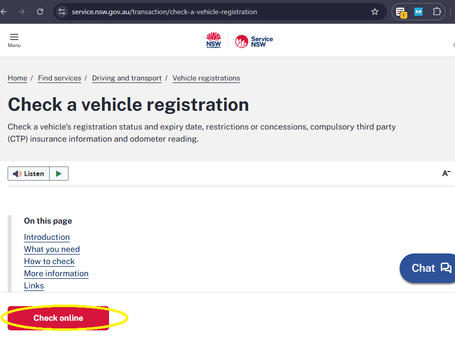 Online Rego check NSW process