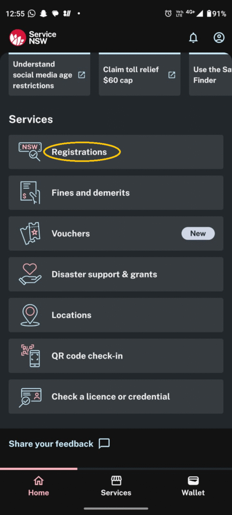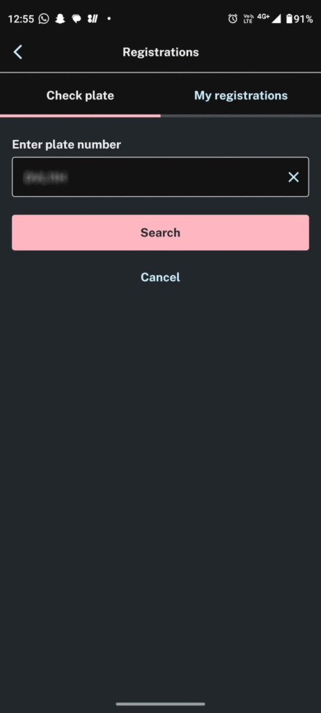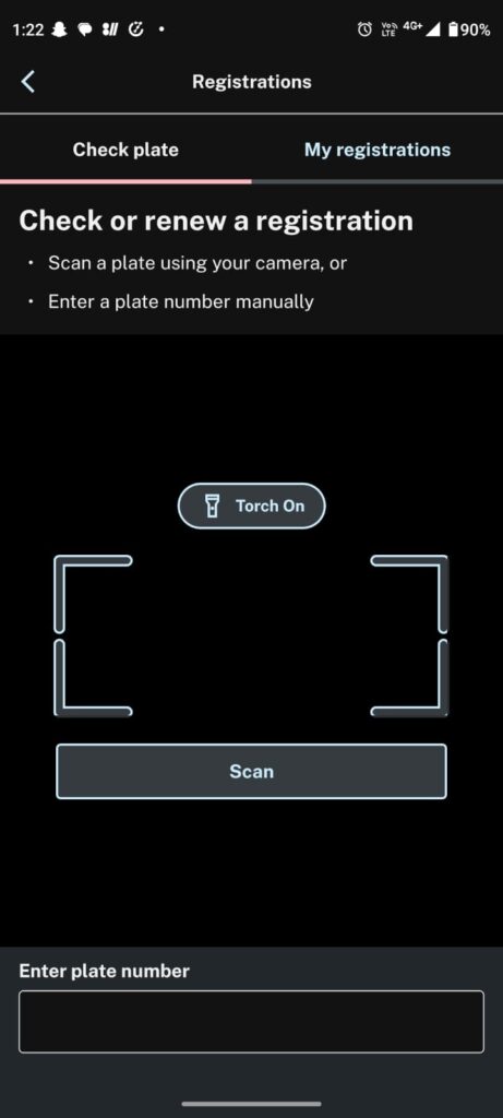 Step 2: Check your registration status: You’ll see a Services section, click on Registrations and enter your number plate manually or scan the number plate.